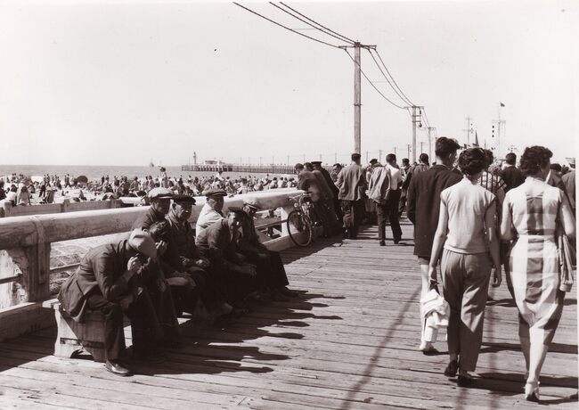 Formaat : 13 x 18 cm. - Enkele vissers op het Weststaketsel volgen de wedstrijd.