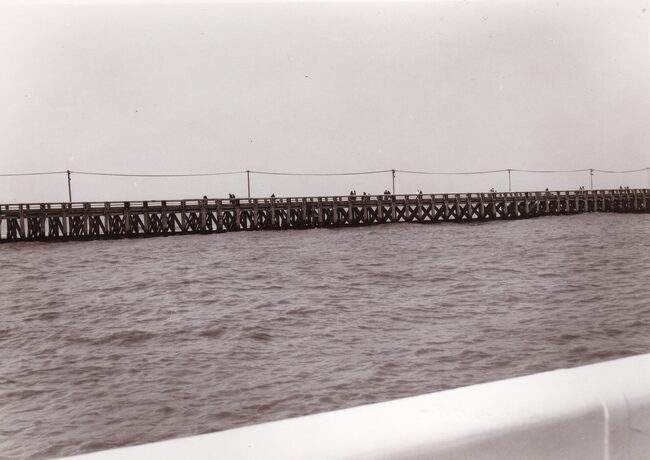 Formaat : 18 x 13 cm. - Een schip heeft het Ooststaketsel geraakt en nogal wat schade aangericht.