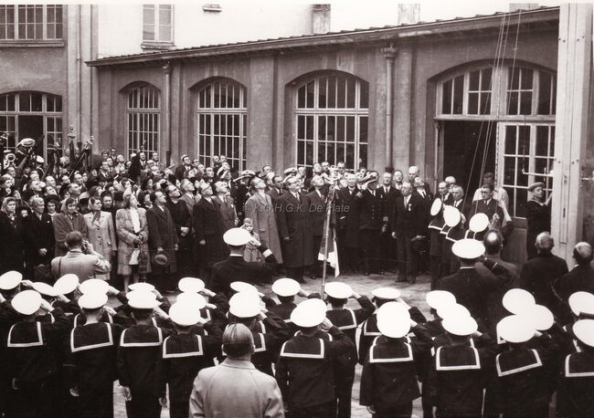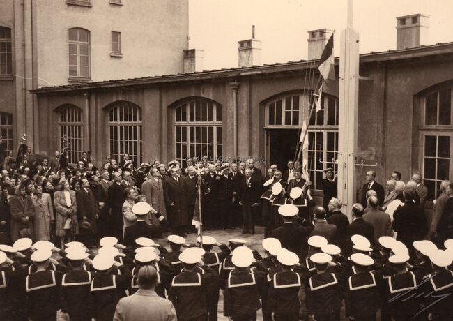 De driekleur wordt gehesen op de koer van de Ibisschool.Centraal premier Achiel VANACKER. "Op donderdag 23 september 1948 vond de eerste belangrijke naoorlogse gebeurtenis plaats. In de inkomhal van de school werd…