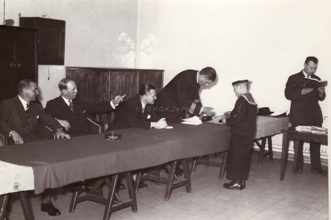 Prijsdeling in de Ibisschool,de tafel met de juryleden.Staand links de directeur Rene DAVID.