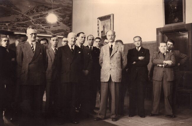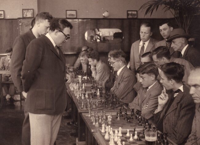 Formaat : 13 x 18 cm. - De deelnemers aan het schaaktornooi werden ophet stadhuis ontvangen