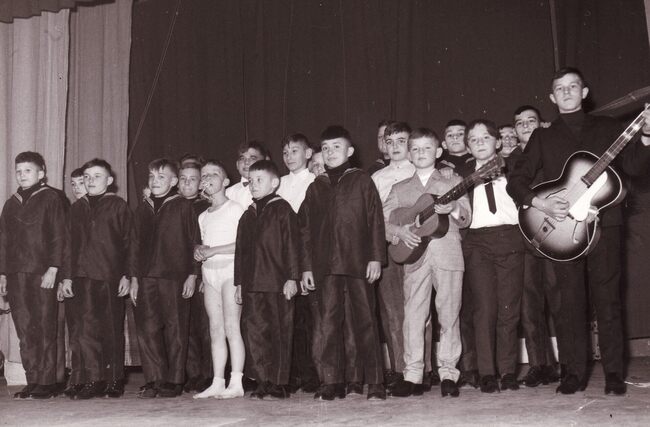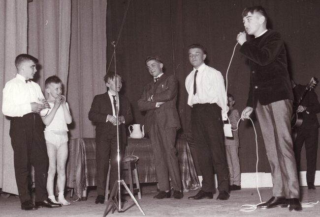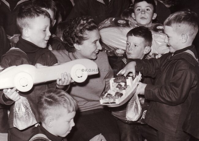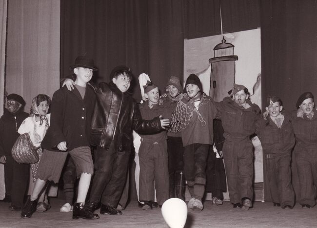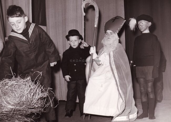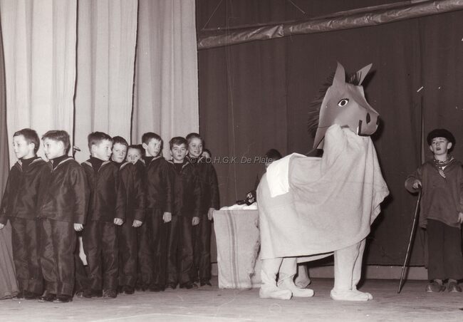 De leerlingen van de Ibisschool op een schoolfeest (Sint Niklaas ?).Centraal rechtstaand directeur Hubert CAESTECKER.