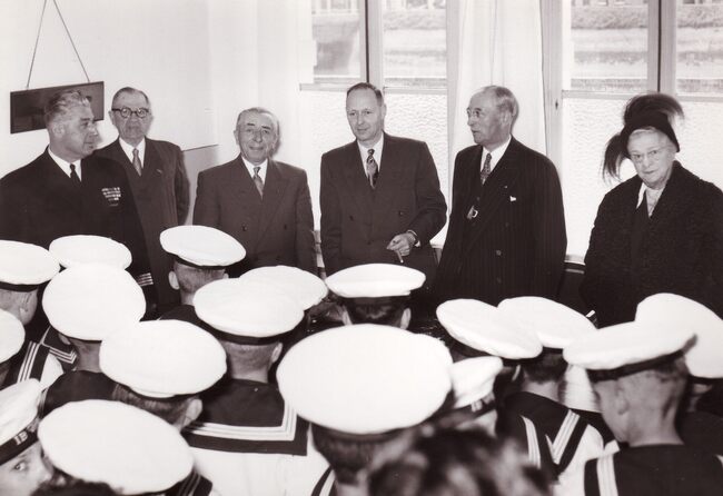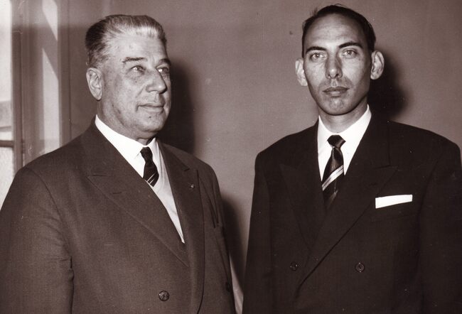 Formaat : 13 x 18 cm. - Links directeur René David (directeur 1951-1959) en directeur Hubert Caestecker (directeur 1959-1989)