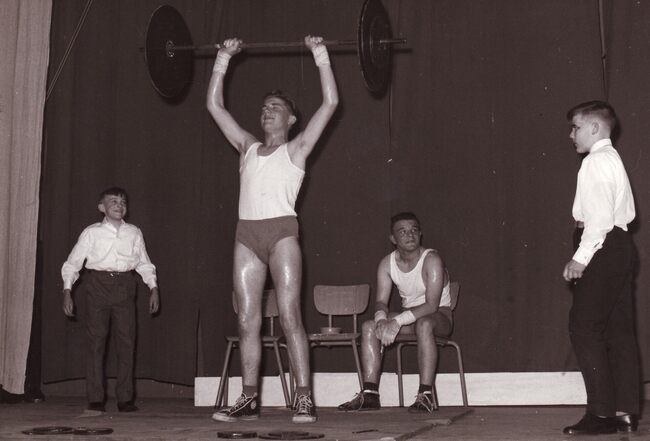 Formaat : 13 x 18 cm. - Sportieve leerlingen treden op tijdens een schoolfeest.