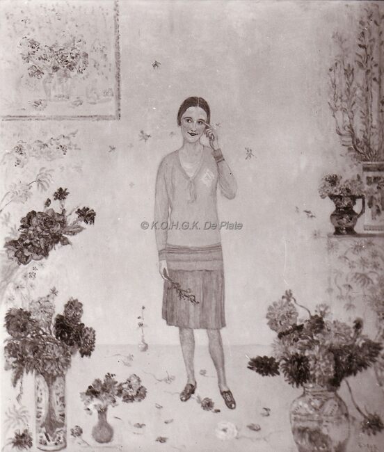 Begrafenis van James ENSOR. Burgemeester Hendrik SERRUYS en twee familieleden van de kunstenaar. De dame is Mariette-Alexandrine TAEN HEE TSEN, de dochter van James Ensor's zuster en enige erfgename.