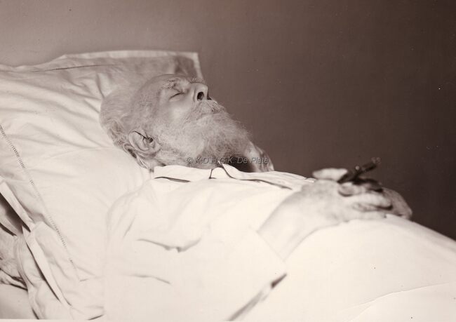 James Ensor op zijn sterfbed. Hij overleed op zaterdag 19 november 1949 in de Heilig Hartkliniek te Oostende