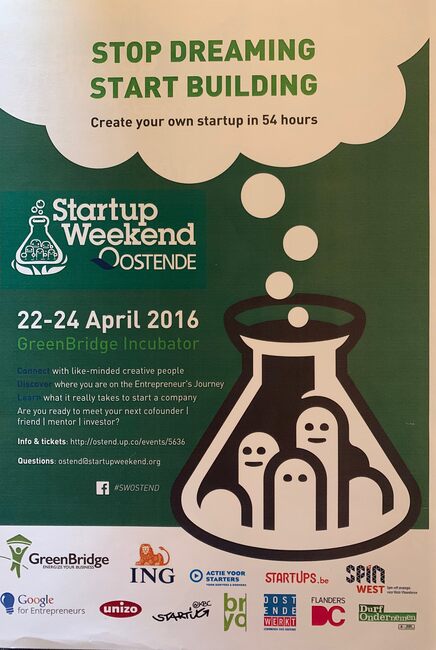 Affiche : Sartup Weekend Oostende. Stop dreaming. Start Building. 22-24/04/2016