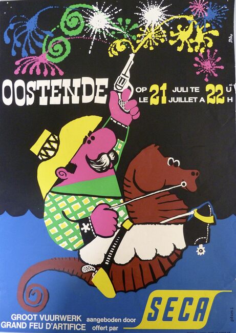 Affiche : SECA. Groot vuurwerk = Grand feu d'artifice. Oostende. 21 juli