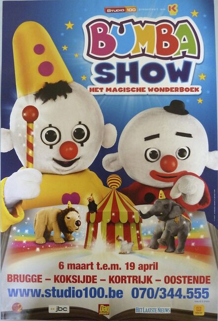 Affiche : Studio 100. Bumba Show : Het magische wonderboek. Brugge - Koksijde - Kortijk - Oostende. 6 maart t.e.m. 19 april