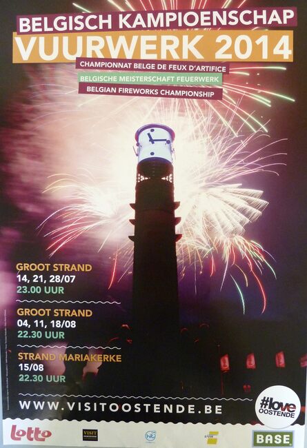 Affiche : Belgisch kampioenschap vuurwerk 2014. Groot strand en strand Mariakerke