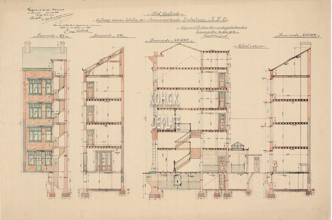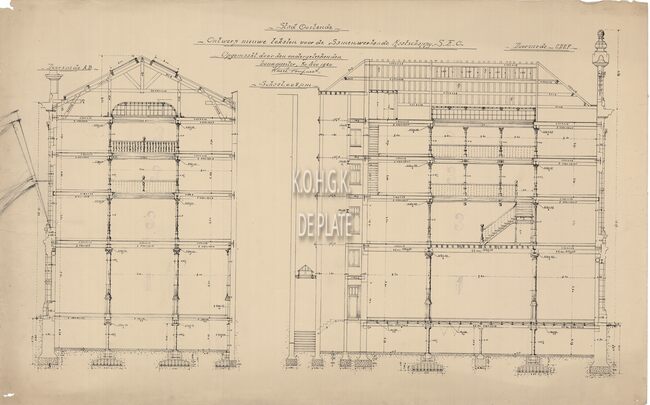 Blauwdruk. Doorsneden nieuwe ovens