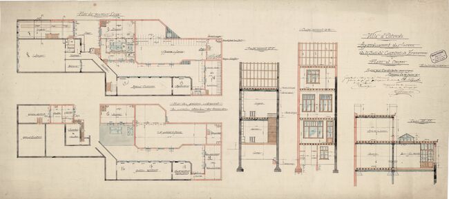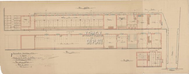 Gekleurd. Vergroten en verandering lokalen Romestraat. Doorsneden en details.