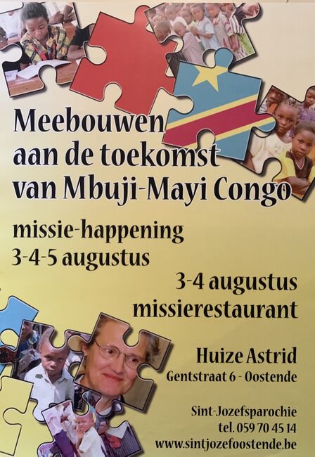 Affiche : Sint-Jozefsparochie. Meebouwen aan de toekomst van Mbuji-Mayi Congo. Huize Astrid. 03-05/08/