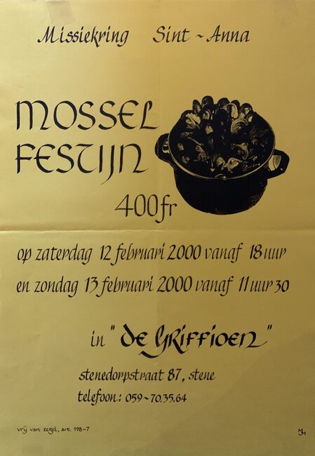 Affiche : Missiekring Sint-Anna. Mossel festijn. De Griffioen. 12-13/02/2000