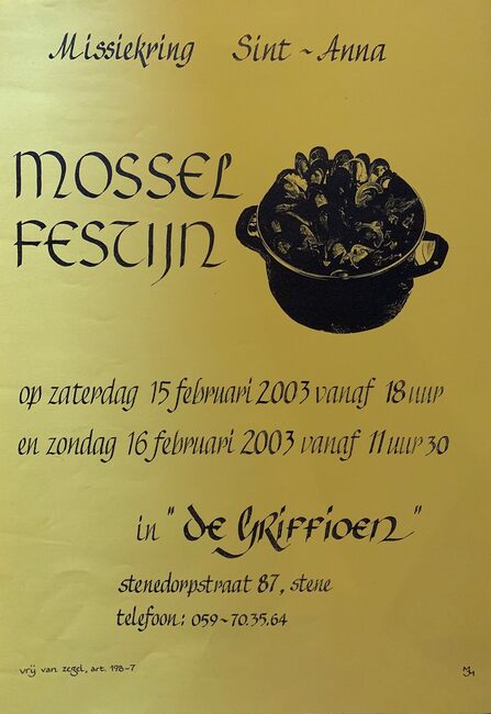 Affiche : Missiekring Sint-Anna. Mossel festijn. De Griffioen. 15-16/02/2003