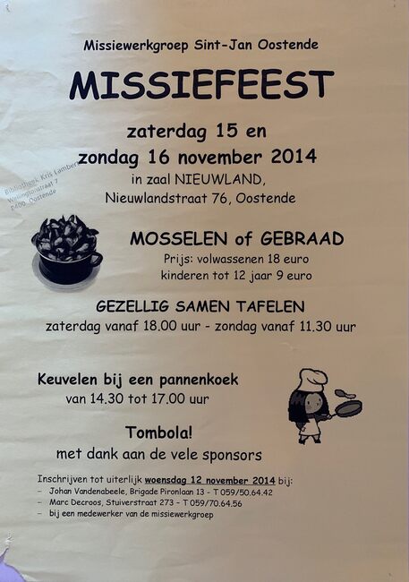Affiche : Missiewerkgroep St.-Jan. Missiefeest. Zaal Nieuwland. 15-16/11/2014