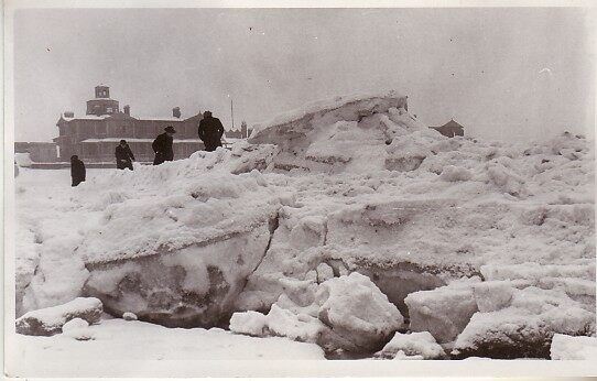 Emile Michaël. -echtefoto. - Aangespoeld ijs op het groot strand nabij het Koninklijk Chalet