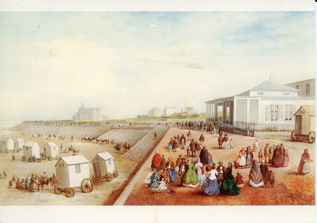 Museum voor Schone Kunsten Oostende. - Michel Van Cuyck (1793-1875) - Het strand in Oostende (ca. 1855) Kleurlitho door Gerlier naar Van Cuyck