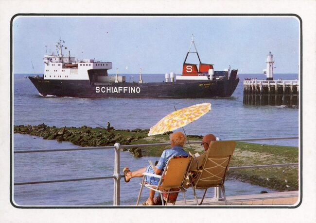 DG Brugge 27. - Het vrachtschip kon ook 50 passagiers meenemen. Voer voor de rederij Schiaffino
