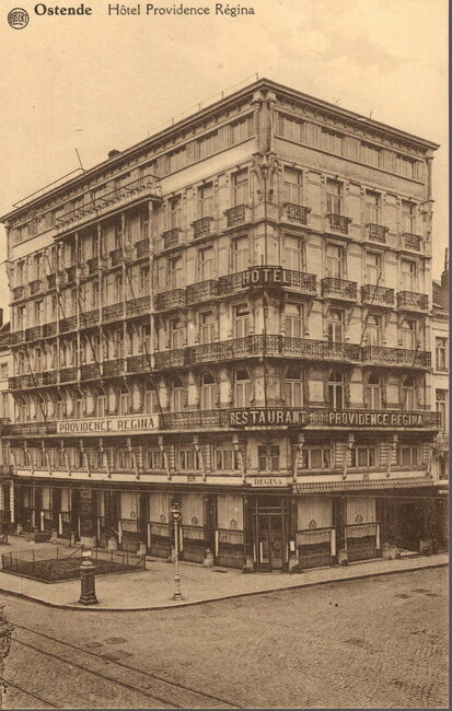 Albert Dohmen. - Ostende Hôtel Providence Regina. Het hotel was gelegen op de hoek van de Van Iseghemlaan en de Vlaanderenstraat 23-29. Let op de brievenbus.