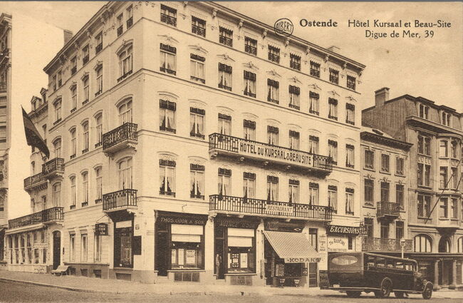 Albert Dohmen. - Hotel Kursaal et Beau Site. Digue de Mer, 39. Op de hoek het reisbureau van Thomas Cook en in de Vlaanderenstraat 41, het reisbureau The Red Cars met hun autocar