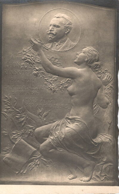 Het memoriaal, een bronzen bas-reliëf, dat nu in de inkomhal van het muziekconservatorium in de Romestraat hangt, is een werkstuk van de eclectische beeldhouwer Pierre Theunis