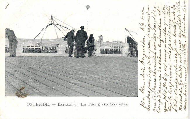 VED/Doncq. - Ostende - Estacade : La Pêche aux Sardines. - Op het einde van het Weststaketsel kon je proberen met een kruisnet een krabbetje of visje verschalken. Misschien kon je zoals de postkaart vermeld in die tijd…
