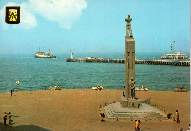 J.V.D.B./Fisa 102/28. - Oostende - Monument der Zeelieden, maalboot en staketsel - Monument aux Gens de mer, malle et estacade - Monument to the Marines, mailboat and jetty - Monument der Seeleute, Fährschiff und Mole.…