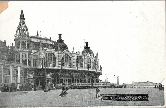 Ostende, Le Kursaal et Palace-Hôtel. Detail van de noordgevel. Op het einde het Royal Palace Hotel