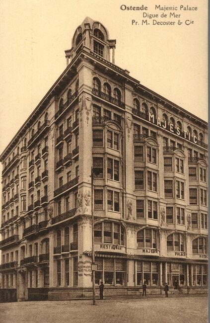 Albert Dohmen. Ostende - Majestic Palace. Digue de Mer. Pr. M. Decoster & Cie. Ouvert de Mars à Octobre. Open from March tot October. Eau courante chaude et froide. Hot and cold running water. Chauffage Central.…