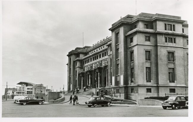 Mess. - In de achtergrond, de tribunes van de Wellingtonrenbaan.