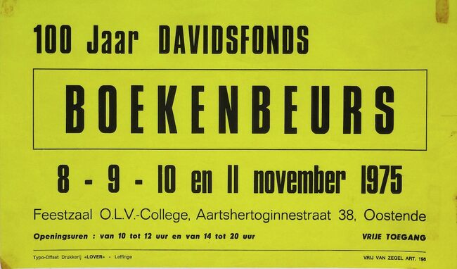 Affiche : Davidsfonds. Boekenbeurs. Feestzaal O. L. V.- College. 8-9-10-11/11/1975