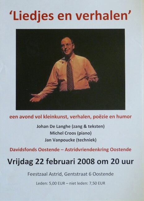 Affiche : Davidsfonds. Liedjes en verhalen. Feestzaal Astrid. 22/02/2008