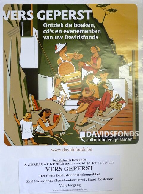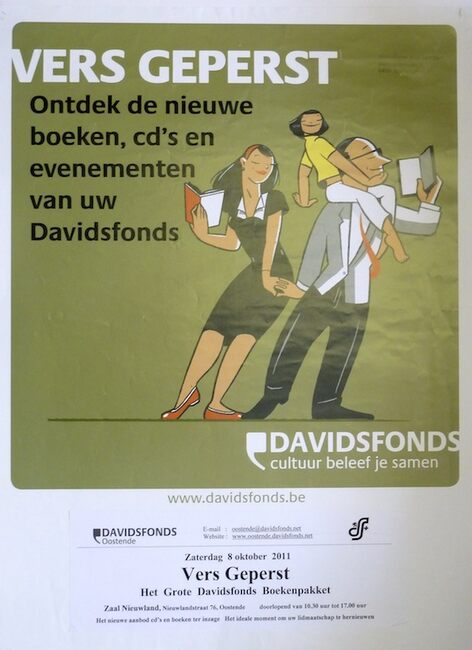 Affiche : Davidsfonds Oostende. Vers geperst : Ontdek alle nieuwe boeken en cd's van uw Davidsfonds. Zaal Nieuwland. Zaterdag 8 oktober 2011