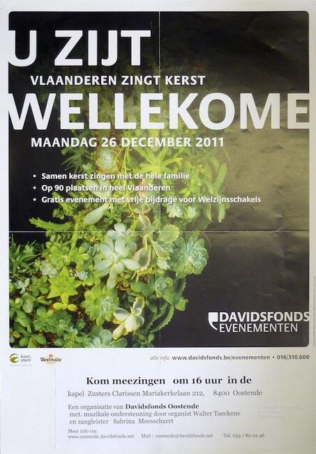 Affiche : Davidsfonds. U zijt wellekome : Vlaanderen zingt kerst. Kapel zusters Clarissen. Maandag 26 december 2011