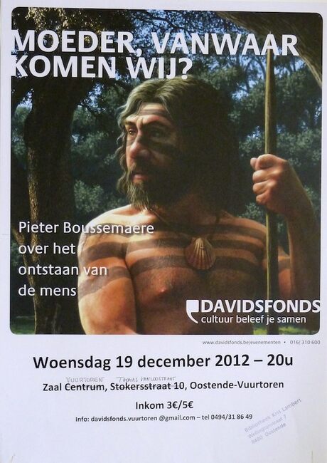 Affiche : Davidsfonds. Moeder, van waar komen wij?. Zaal Vuurtoren. 19/12/2012