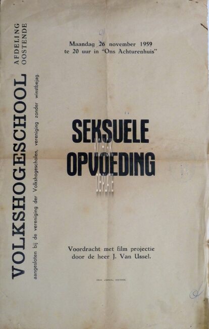Affiche : Volkshogeschool. Seksuele Opvoeding. 'Ons Achturenhuis'. 9/11/1959