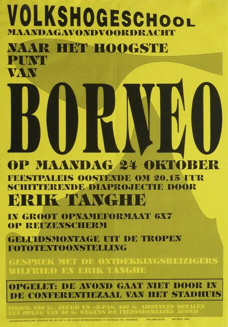 Affiche : Volkshogeschool. Naar het hoogste punt van Borneo. Feestpaleis Oostende. 24/10/1994.