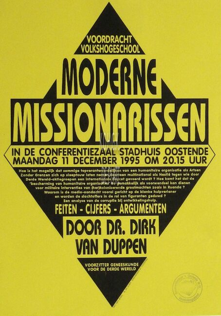 Affiche : Volkshogeschool. Voor God en Vaderland. Conferentiezaal stadhuis Oostende. 16/01/1995