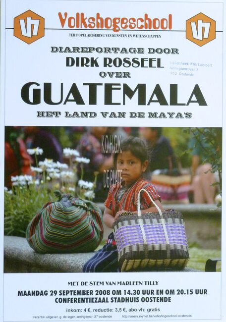 Affiche : Volkshogeschool. Guatemala : het land van de Maya's. Conferentiezaal stadhuis Oostende. 29/09/2008