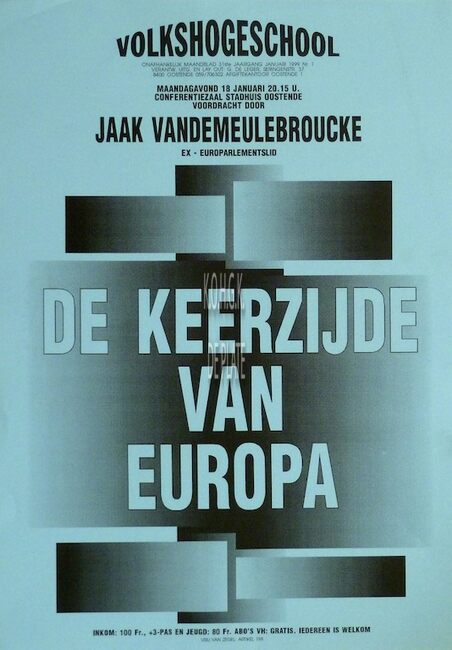 Affiche : Volkshogeschool. De keerzijde van Europa. Conferentiezaal stadhuis Oostende. 18/01/1999.