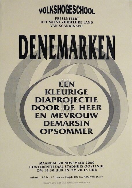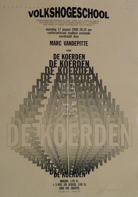 Affiche : Volkshogeschool. De Koerden. Conferentiezaal stadhuisOostende. 17/01/2000.