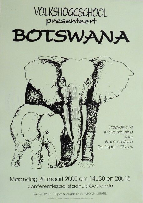 Affiche : Volkshogeschool. Botswana. Conferentiezaal stadhuis Oostende. 20/03/2000