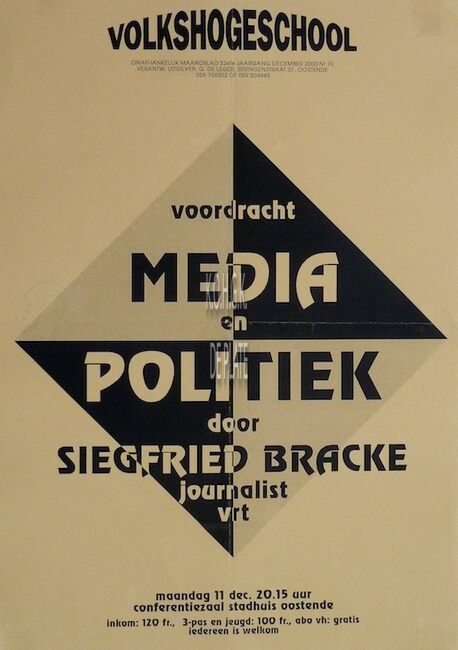 Affiche : Volkshogeschool. Media en politiek. Conferentiezaal stadhuis Oostende. 11/12/2000
