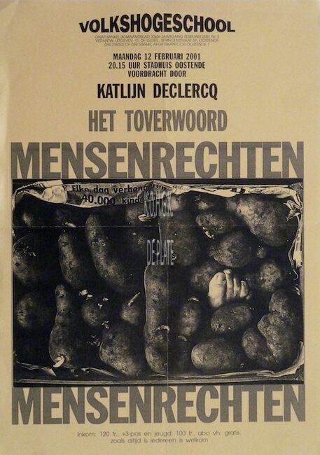 Affiche : Volkshogeschool. Mensenrechten. Conferentiezaal stadhuis Oostende. 12/02/2001.