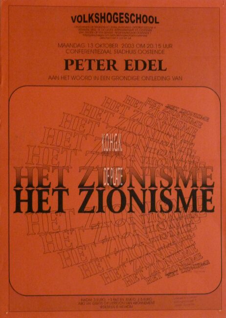 Affiche : Volkshogeschool. Het Zionisme. Conferentiezaal stadhuis Oostende. 13/10/2003