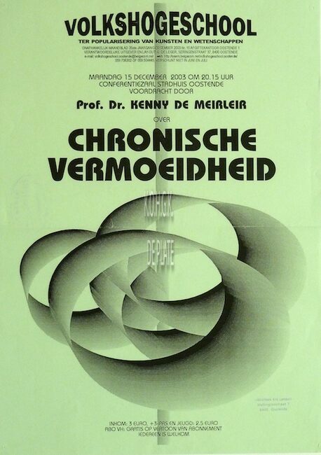 Affiche : Volkshogeschool. Chronische vermoeidheid. Conferentiezaal stadhuis Oostende. 15/12/2003