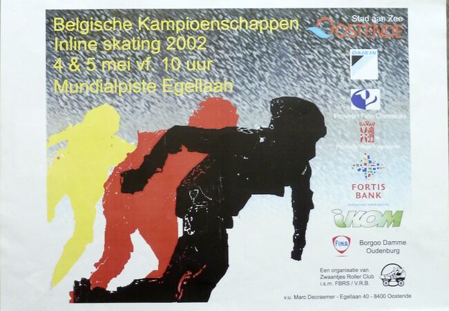 Affiche : Zwaantjes Roller Club. Belgische Kampioenschappen Inline Skating. Mundialpiste Egellaan.4 - 5 mei 2002.