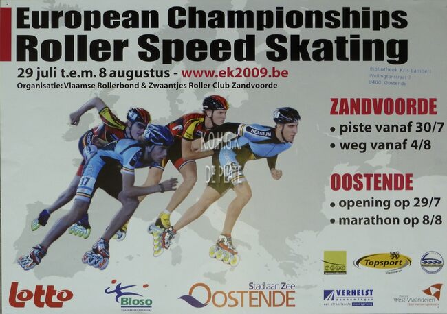Affiche : Vlaamse Rollerbond & Zwaantjes Roller Club Zandvoorde. European Championschips Roller Speed Skating. ZANDVOORDE en OOSTENDE. 29 juli tot en met 8 augustus 2009.