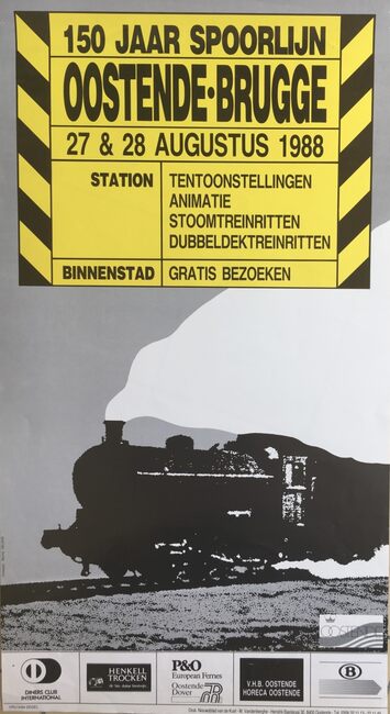 Affiche : 150 jaar spoorlijn. Oostende Brugge. Van 27 en 28 augustus 1988